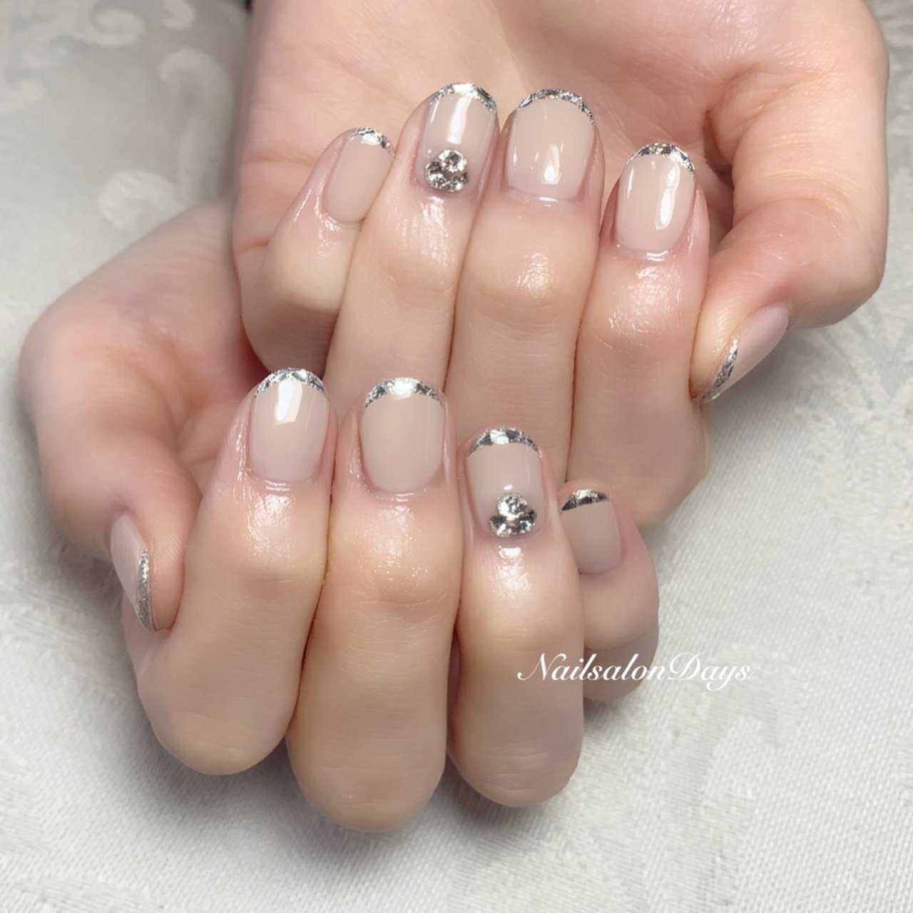 大人デザインネイル ラメグラ 斜めフレンチ キラキラストーン 左右非対称 ビアンカ アイズアンドネイルズ 新宿西口店 (Bianca eyes&nails) ハートネイル☆¥70 春 夏 秋 冬 ワンカラー ピンク シル